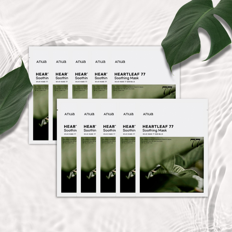 Heartleaf 77% Soothing Sheet Mask has the soothing power of 77% Houttuynia Cordata extract. This mask moisturizes, protects and soothes your skin from external irritations.Its microfiber sheet adheres perfectly to all skin types, ensuring maximum absorption and skin rejuvenation.