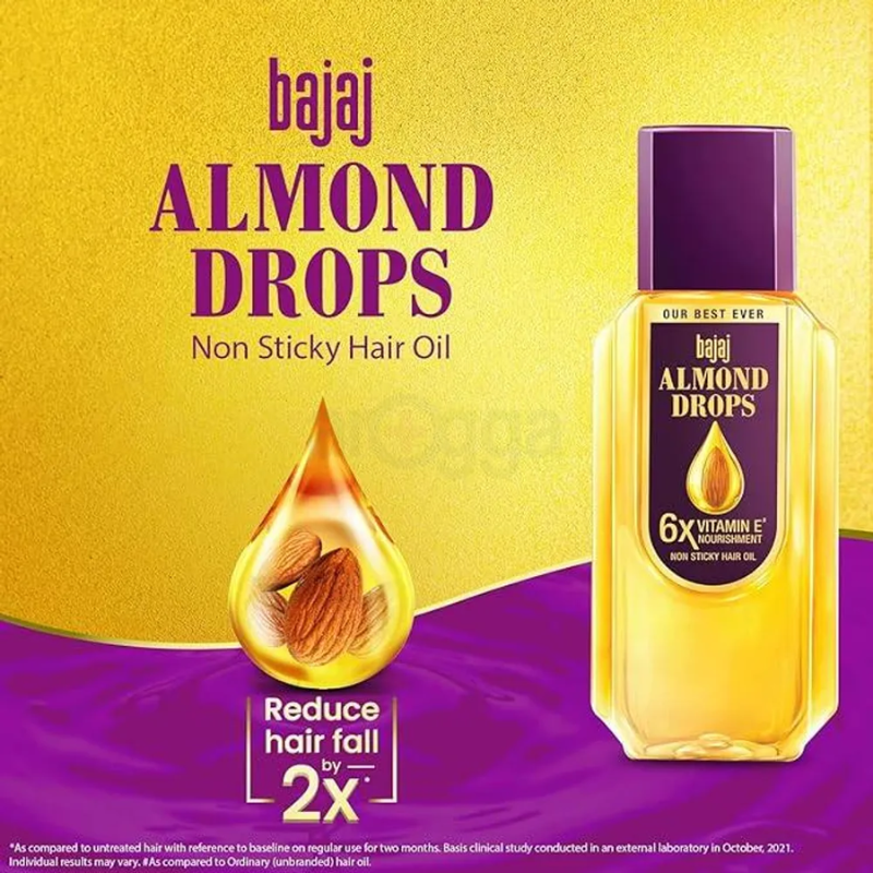 - Reduces hair fall upto 79% : Bajaj Almond Drops Hair Oil is enriched with Vitamin E & Almond Oil. It helps reduce hair fall due to breakage upto 79%