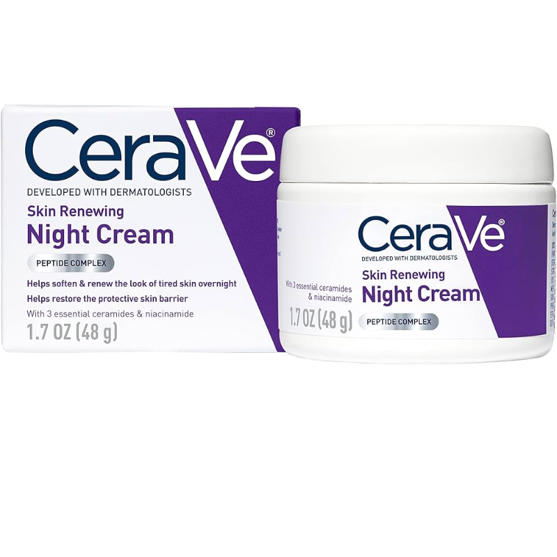Nighttime is the skin’s chance to help renew itself, and a properly formulated night cream provides hydrating and rejuvenating benefits. We recommend looking for formulas designed with hyaluronic acid, niacinamide and ceramides to hydrate, calm and restore the skin barrier, like our CeraVe Skin Renewing Night Cream, which also features peptides to help improve the appearance of fatigued skin.