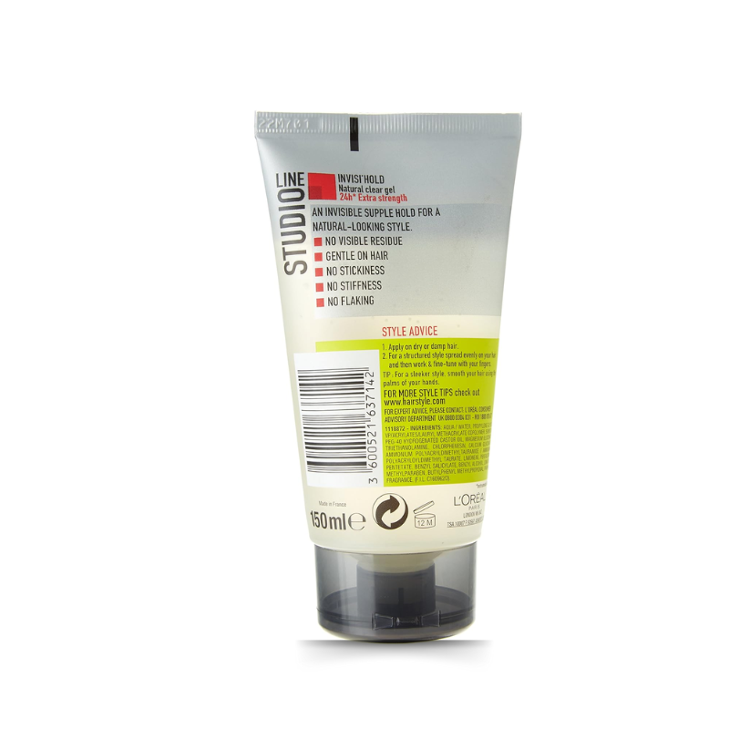 L'Oréal Studio Line Invisible hold 24h Natural Clear Gel Extra Strength 8 provides hair with a flexible hold that looks natural. It is gentle on your hair and won't leave it sticky, stiff or with flakes. Holds hair for up to 24 hours in your desired style.
