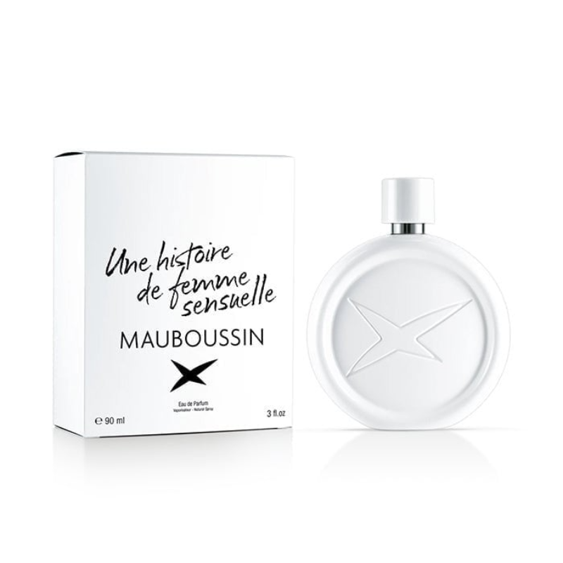 Une Histoire de Femme Sensuelle by Mauboussin, a captivating fragrance that celebrates the essence of femininity. This captivating fragrance features a sumptuous bouquet of roses and white freesia , enveloped in delicious sweet and gourmet notes of pralines. Its base, enhanced by the intensity of white musk, leaves behind a unique and sensual imprint.