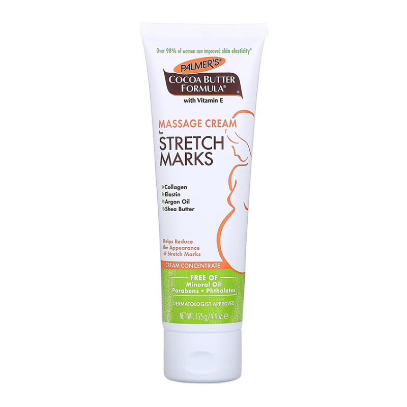 Palmer’s Cocoa Butter Formula Massage Cream helps visibly improve skin elasticity and reduce the appearance of stretch marks. Pure Cocoa Butter and Shea Butter, Natural Oils, Collagen, Elastin and Lutein keep skin moisturized and supple for 48 hours allowing skin to stretch more easily. Widely recommended for stretch marks during and after pregnancy or weight fluctuation. This cream concentrate formula is ideal for stretch mark prone areas such as tummy, hips, thighs and bust.